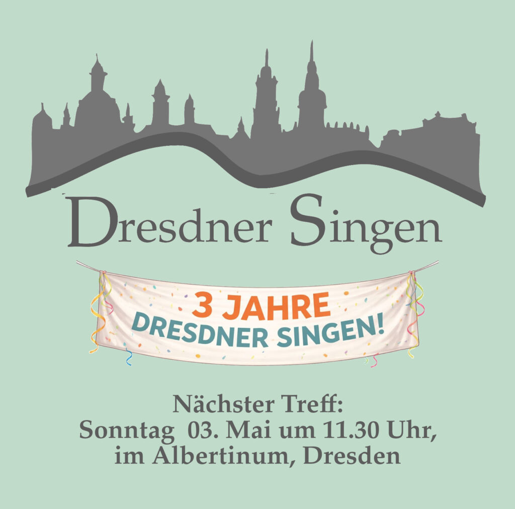 Das nächste Dresdner Singen findet am Sonntag, 03. Mai, um 11:30 Uhr im Albertinum statt.